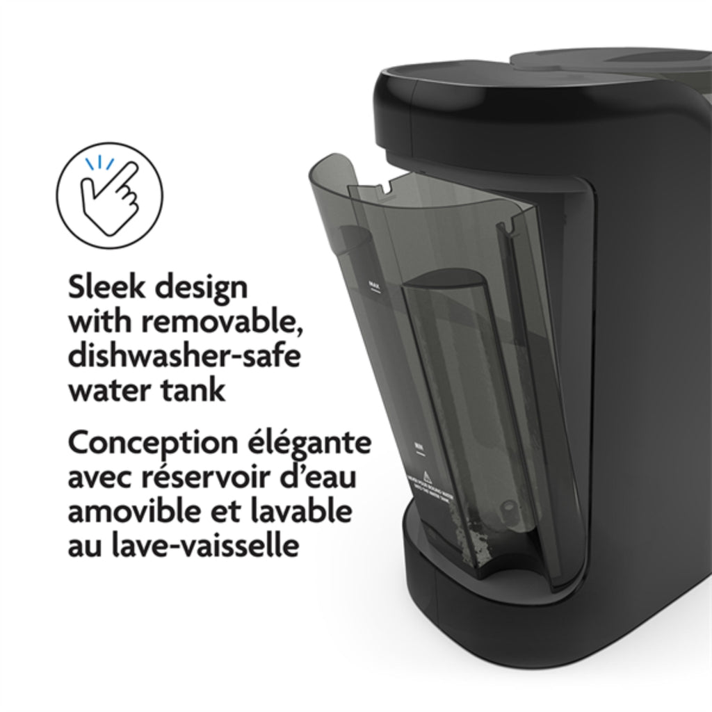 Escolha entre 3 configurações de aquecimento (temperatura ambiente, temperatura corporal, mais quente que a temperatura corporal) / Escolha fórmula ou apenas água.