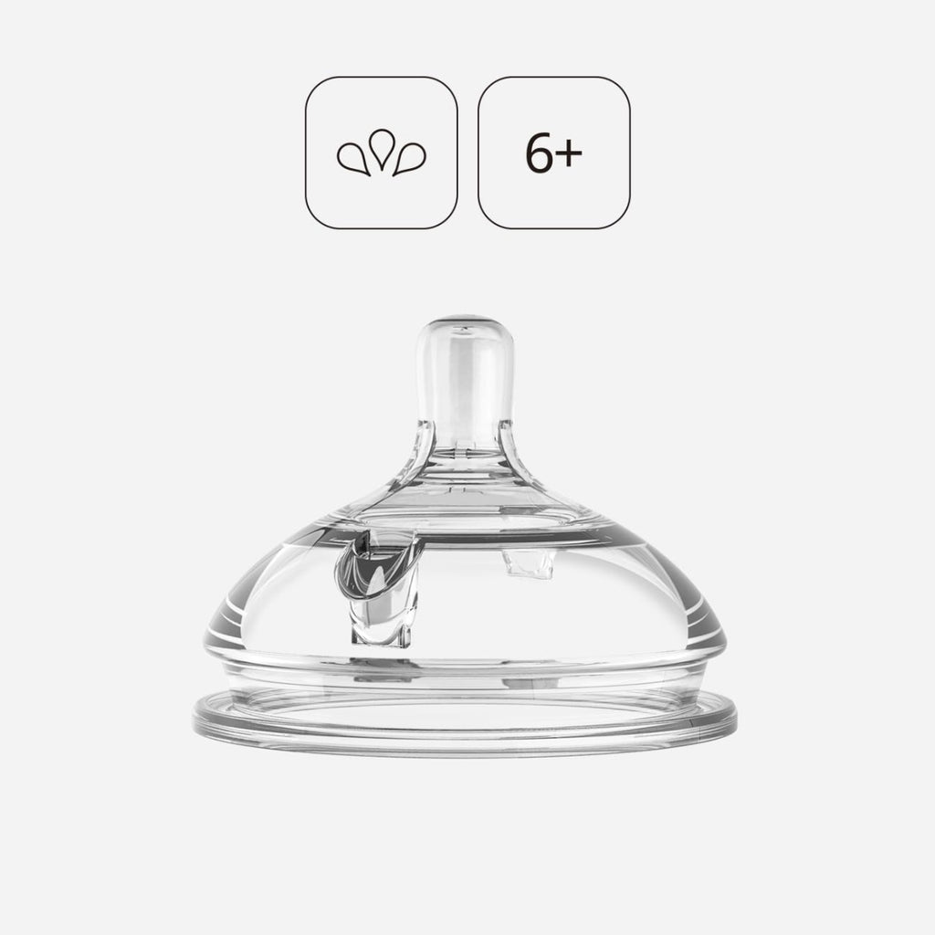 - É adequado para bebês acima de 6 meses, pois nessa fase os bebês tendem a ter maior coordenação muscular e capacidade de sucção mais forte, permitindo que eles controlem o fluxo de leite da mamadeira sem engasgar ou se afogar