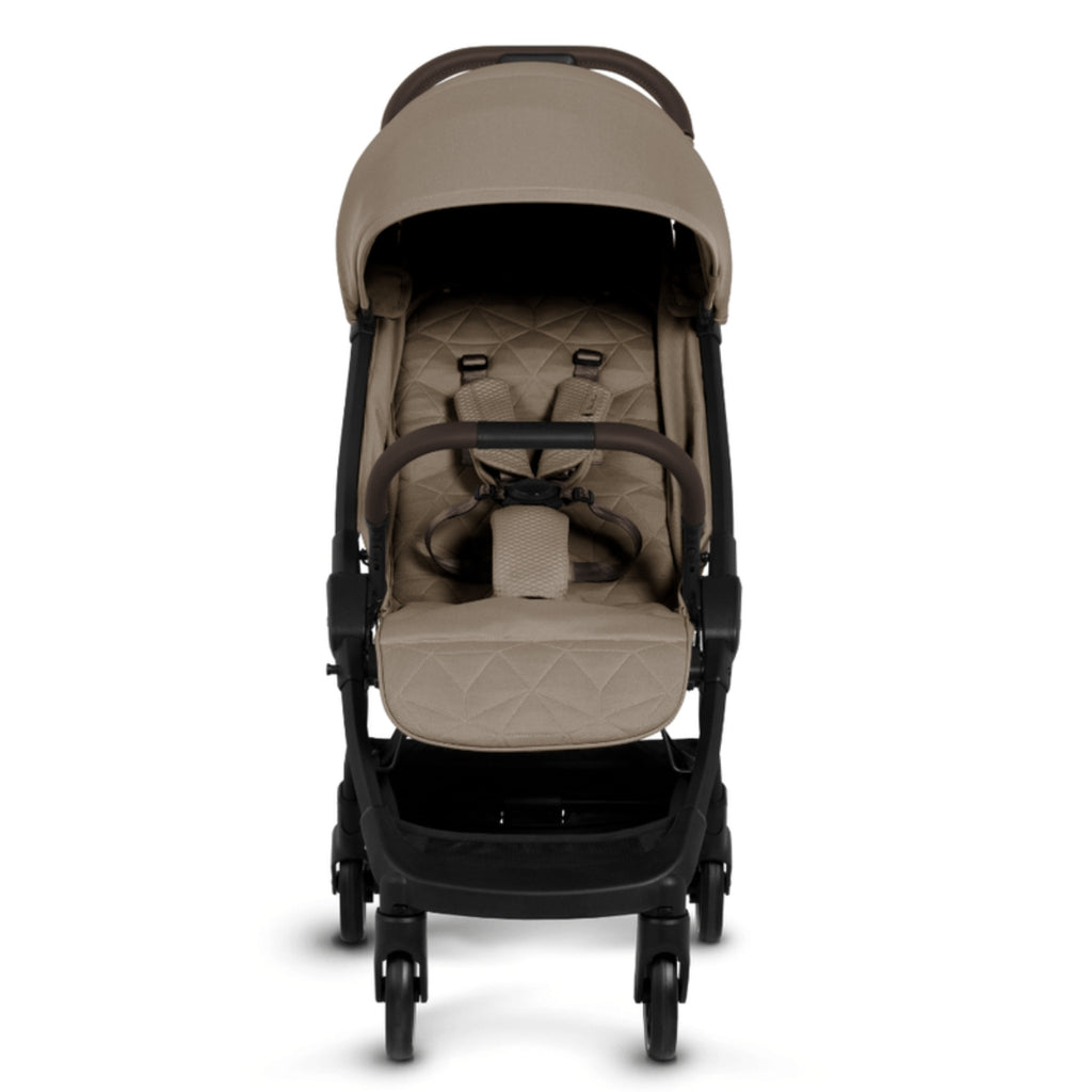 Capota UPF50+ com visor, fivela magnética Genius™, apoio de pernas ajustável, tecidos anti-amassado e rodas robustas para um passeio suave e seguro.