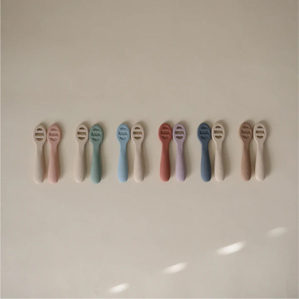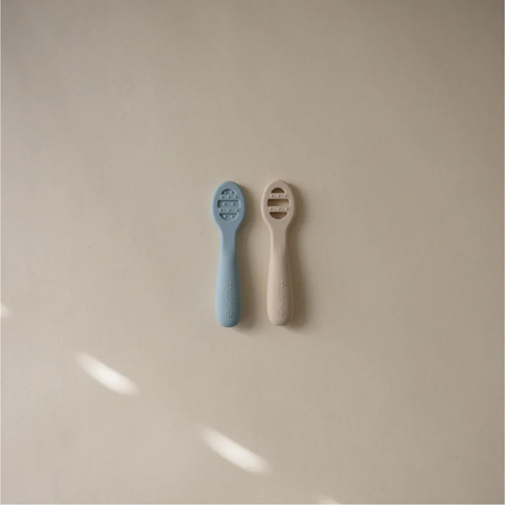 Tudo sobre Kit de Colheres Iniciais Para Bebês Mushie Powder Blue e Shifting Sand
