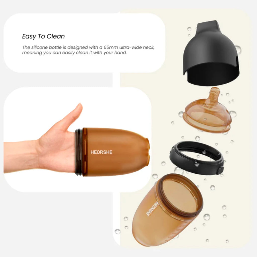 A maternidade é uma jornada linda, e todo pai e mãe querem o melhor para seu bebê. A Mamadeira HEORSHE 240ML, além de um design sofisticado, facilita a combinação entre a amamentação e a alimentação com mamadeira de forma natural e sem esforço.