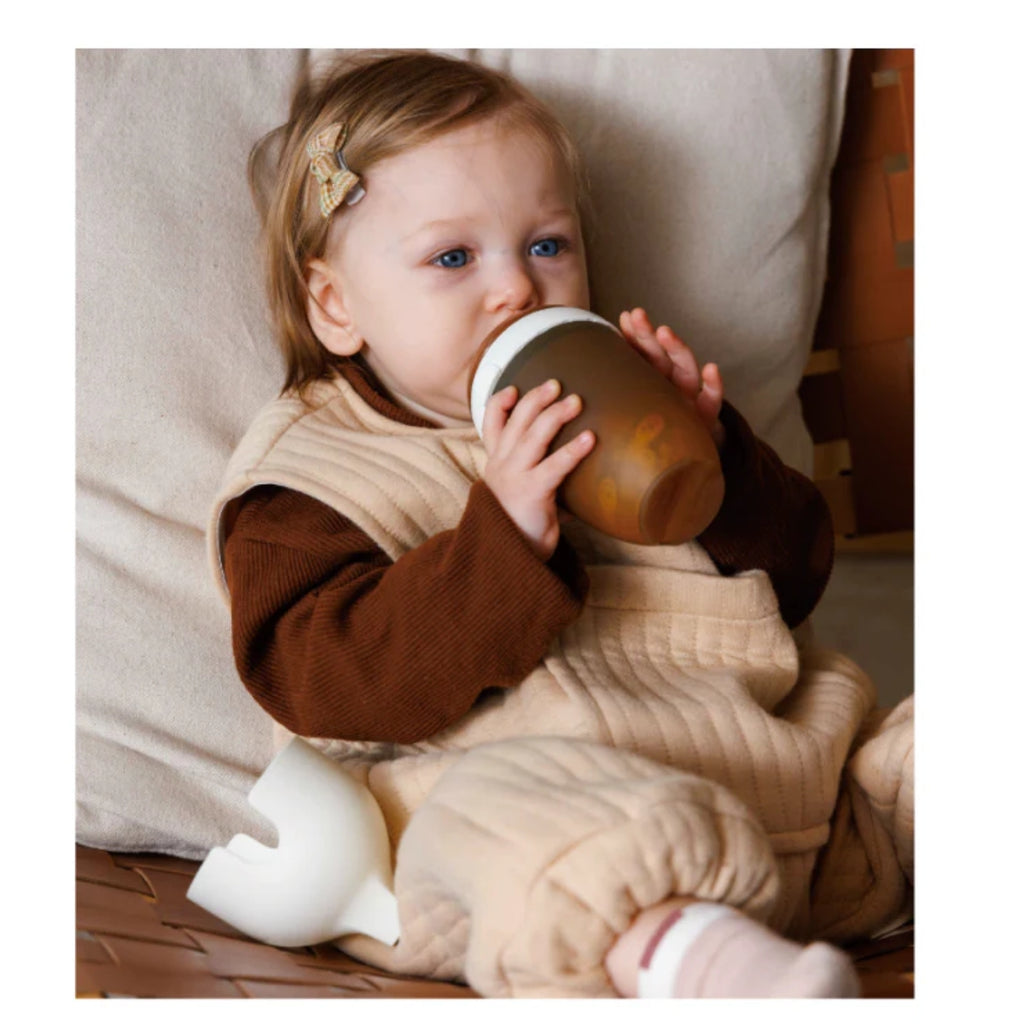 Esta é uma mamadeira de boca larga. Com um design de bucal ultra-largo de 65 mm, permite que a limpeza seja feita facilmente com toda a mão.