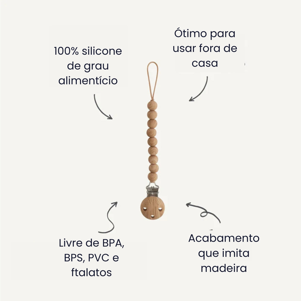 Reduz quedas no chão e perda de chupetas durante passeios, garantindo mais higiene e tranquilidade para os pais.