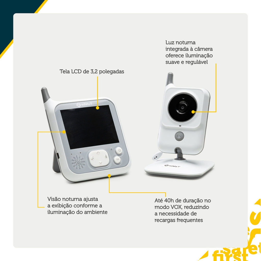 A Babá Eletrônica Safe Spot Safety 1st é a escolha ideal para quem busca praticidade, tecnologia e tranquilidade no monitoramento do bebê. Compacta e funcional, ela combina visor LCD de 3,2", visão noturna automática, áudio bidirecional e luz noturna regulável em um design fácil de usar e cheio de recursos inteligentes.