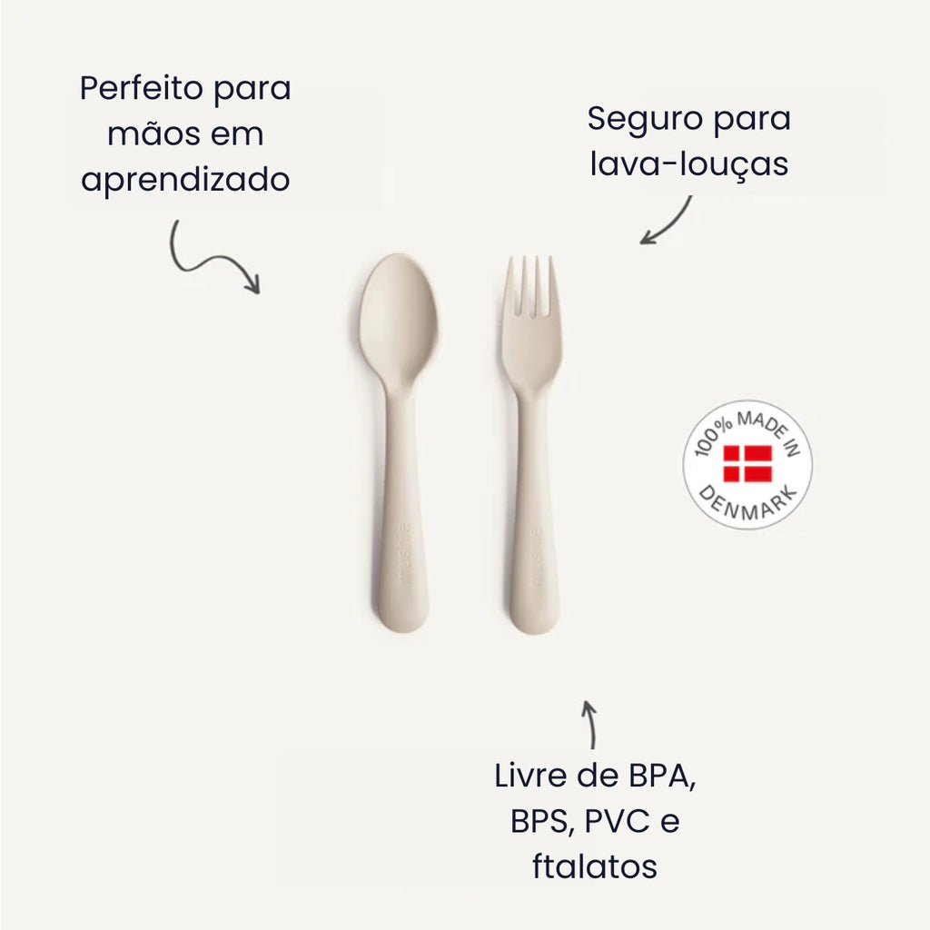 Por que escolher o Mushie Plastic Fork & Spoon Set?