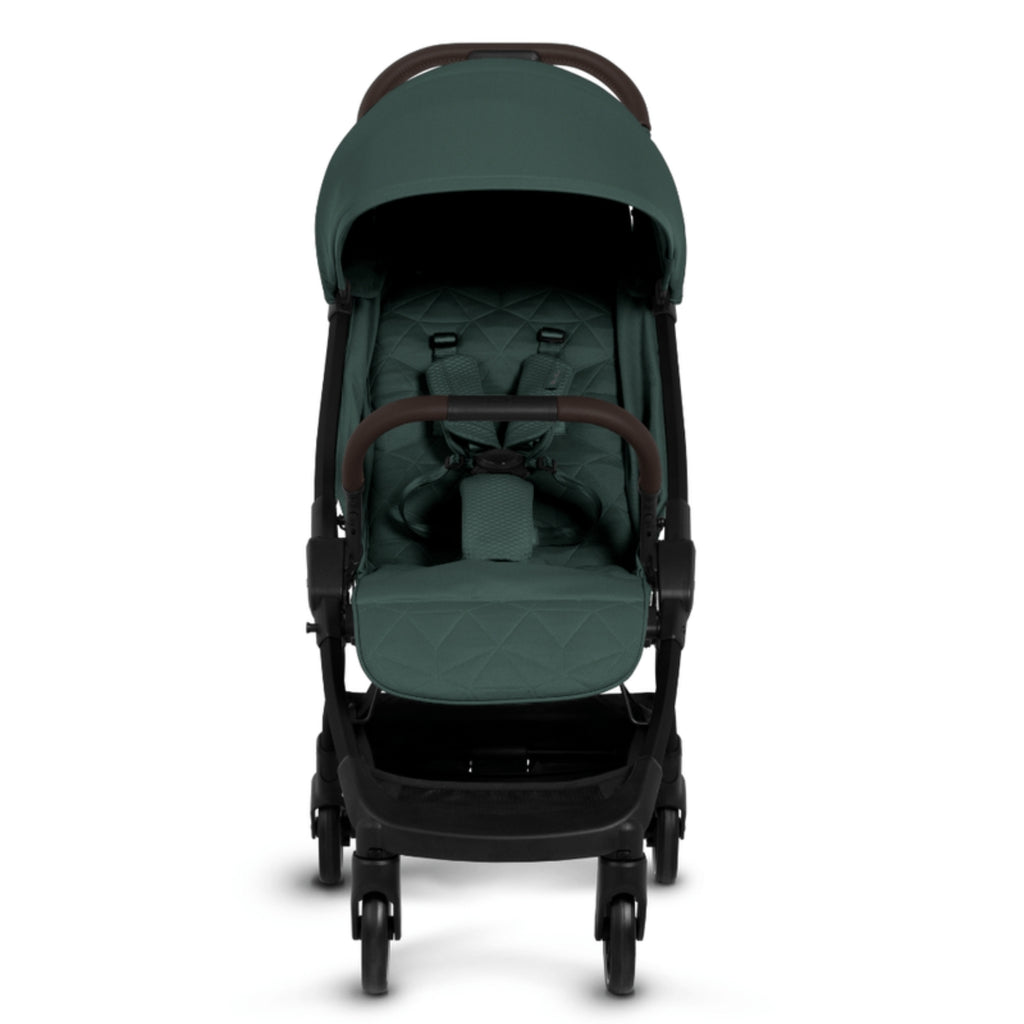 Capota UPF50+ com visor, fivela magnética Genius™, apoio de pernas ajustável, tecidos anti-amassado e rodas robustas para um passeio suave e seguro.