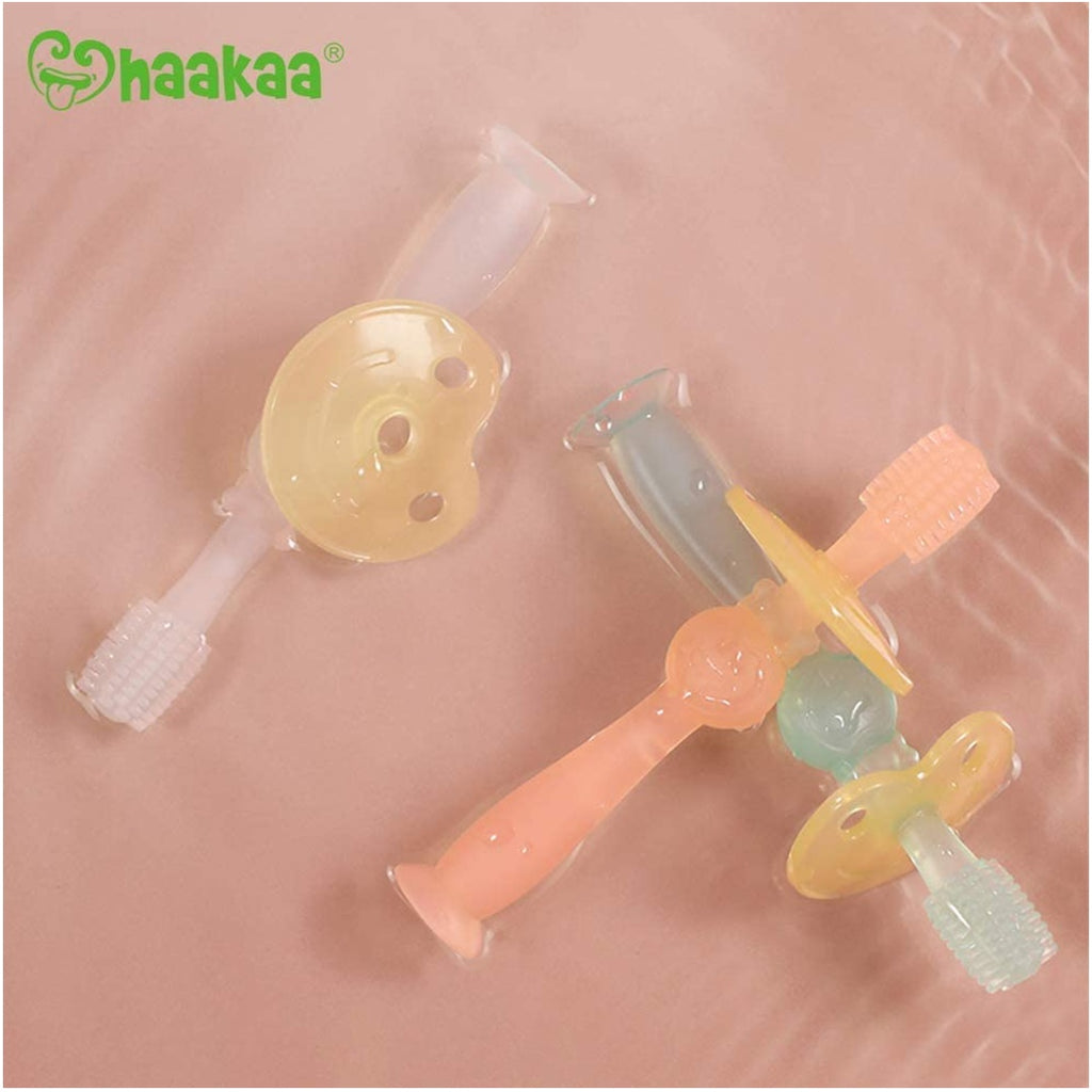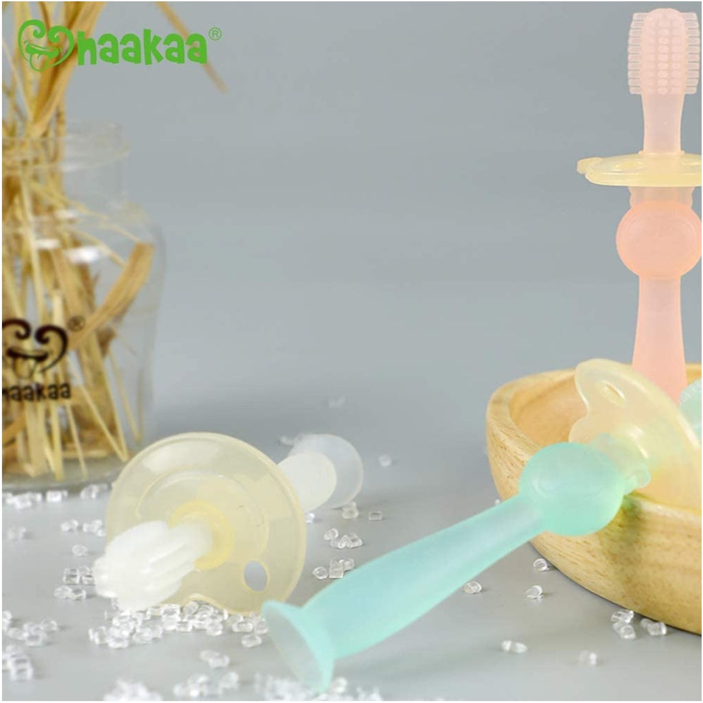 haakaa 360° Silicone Baby Toothbrush with Suction Base Infant to Toddler Toothbrush, Food Grade Silicone, 1pc (Pink)