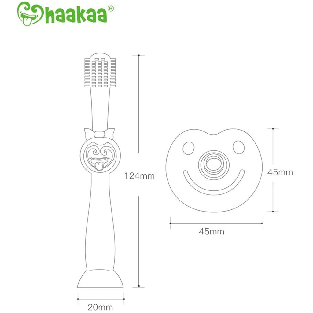 A Escova Dental Infantil de Silicone 360° Haakaa Pink é feita com cerdas que cobrem toda a cabeça da escova, proporcionando uma limpeza 360°. Removendo mais placas e proporcionando uma melhor experiência geral de limpeza do que as escovas de dentes infantis convencionais.