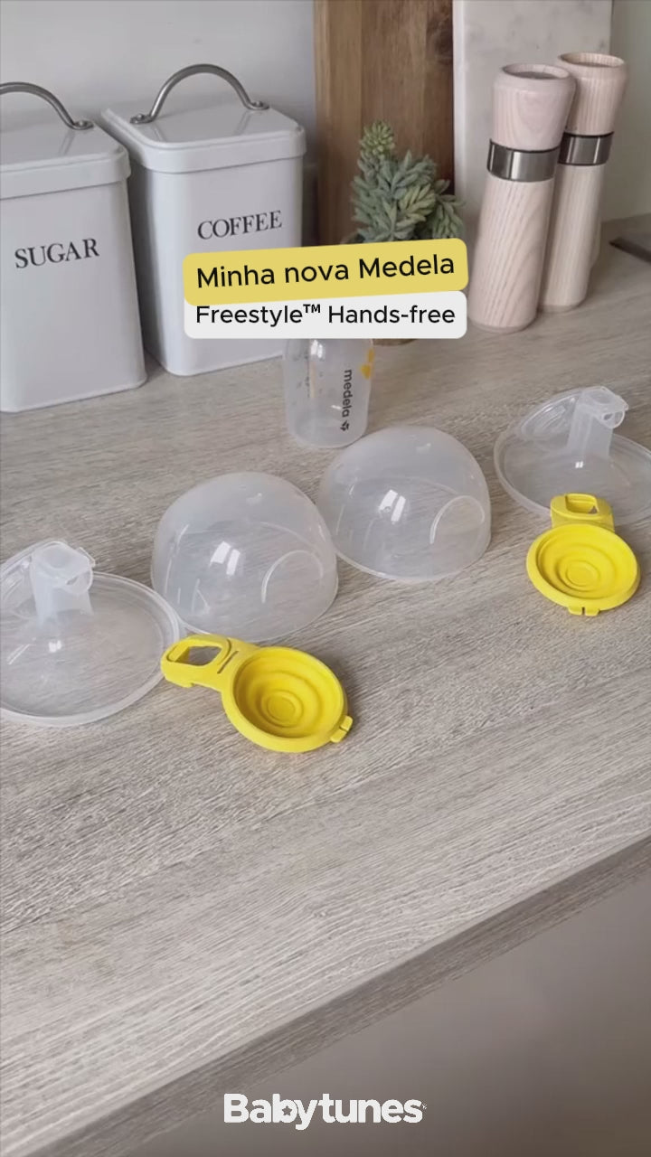 - A nova bomba tira leite mãos-livres Freestyle™ apresenta tecnologias bem pesquisadas da Medela, como protetores mamários com ângulo de 105° e 2-Phase Expression™. Ele também apresenta os novos copos da coleção Hands-free, que são projetados exclusivamente para se ajustarem anatomicamente à maioria dos formatos de seios e sutiãs de amamentação.
