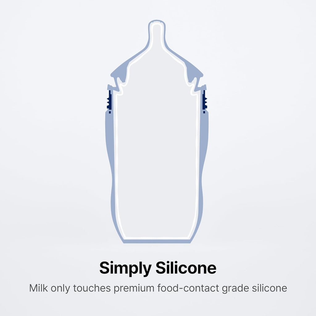 O interior foi projetado para que o leite tenha contato apenas com silicone grau alimentício de alta qualidade, garantindo maior pureza e segurança.