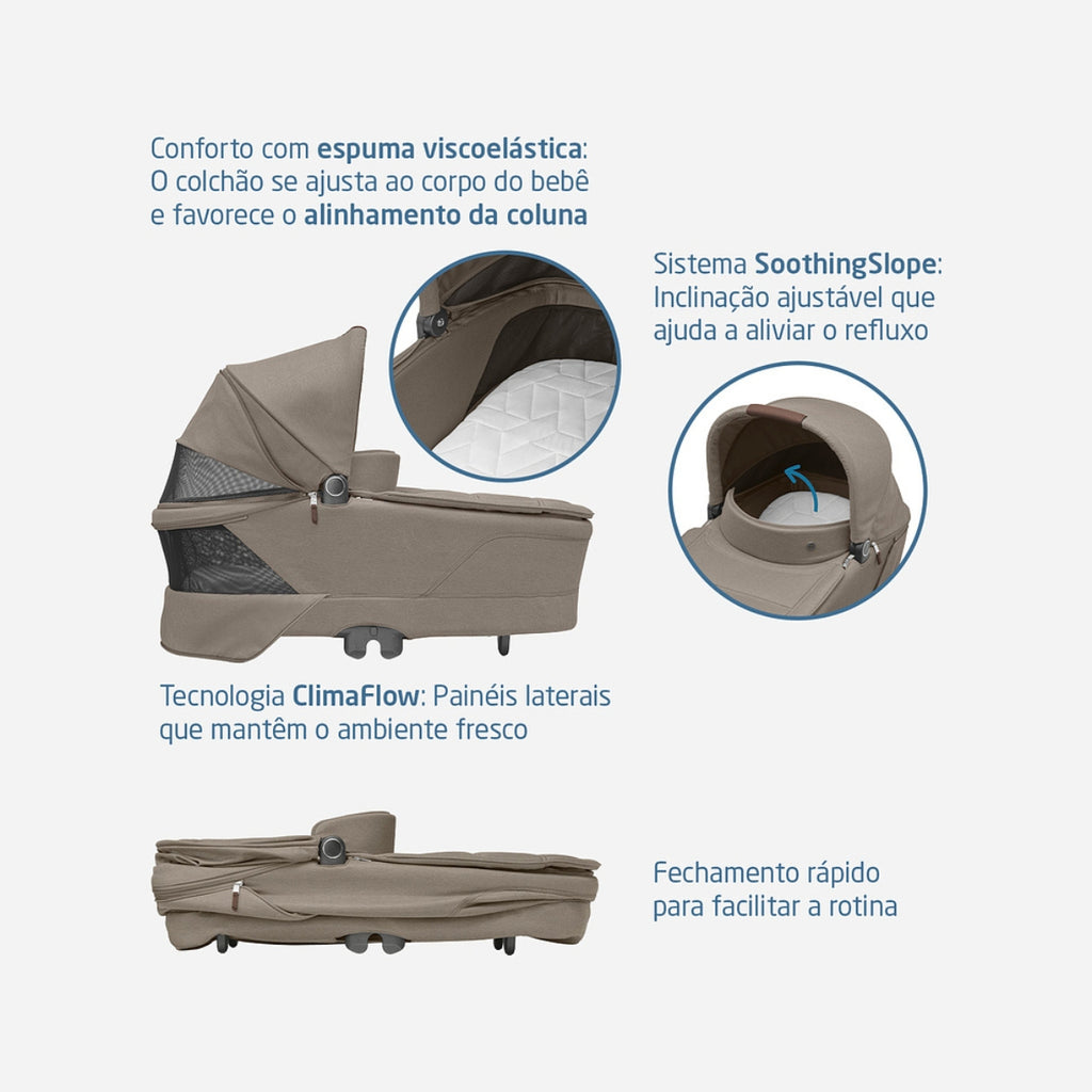 O Moisés Infantil Maxi-Cosi Sense foi desenvolvido para oferecer máximo conforto, segurança e praticidade nos primeiros meses do bebê, tanto durante os passeios quanto no descanso em casa. Com design espaçoso, colchão ergonômico e tecidos sustentáveis, ele garante um ambiente acolhedor, saudável e funcional para o dia a dia da família.