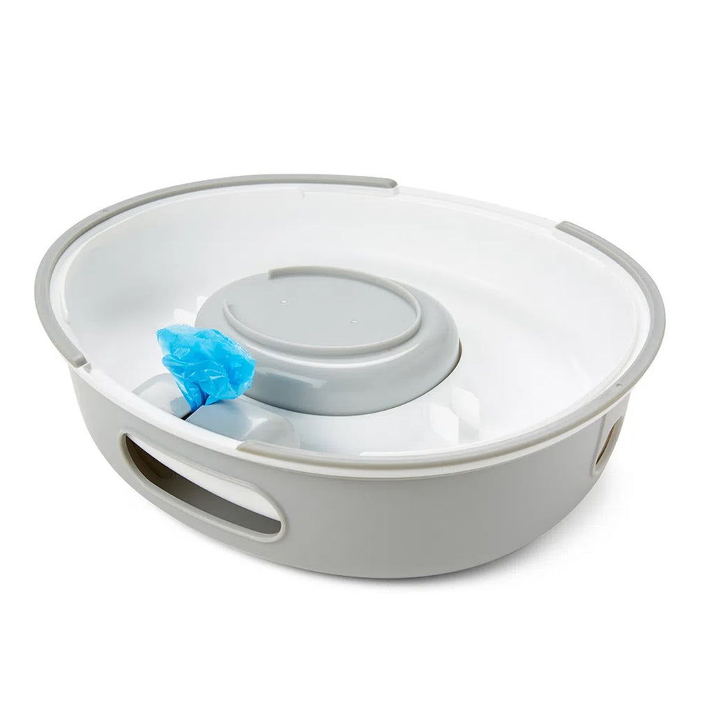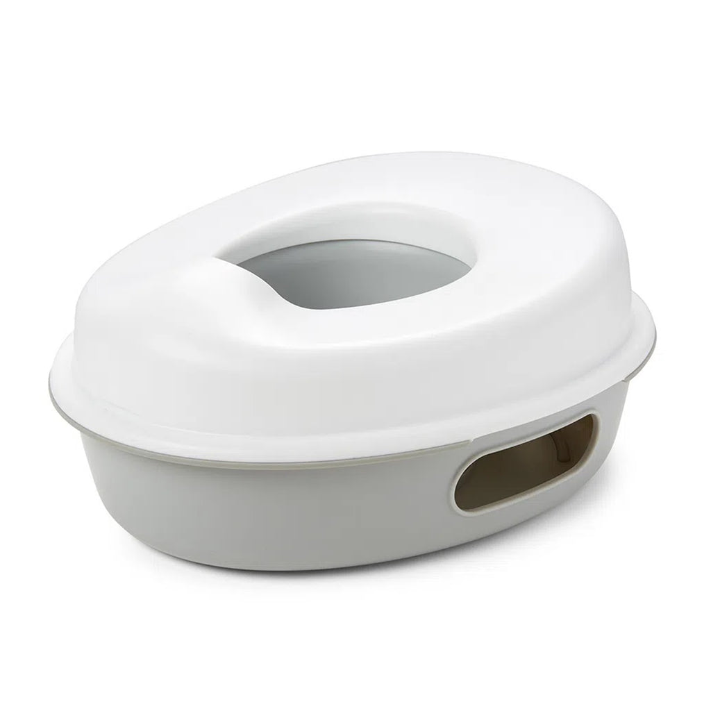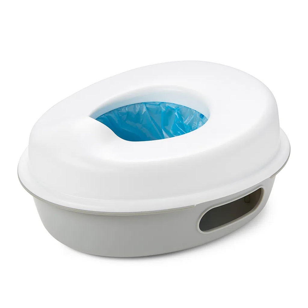 Apresentando um design compacto e elegante é ótimo para viagens, fácil de limpar e funciona como um penico portátil, com um prático porta-sacos descartável, um troninho infantil ou um redutor de assento que se encaixa na maioria dos assentos sanitários para três opções em um.