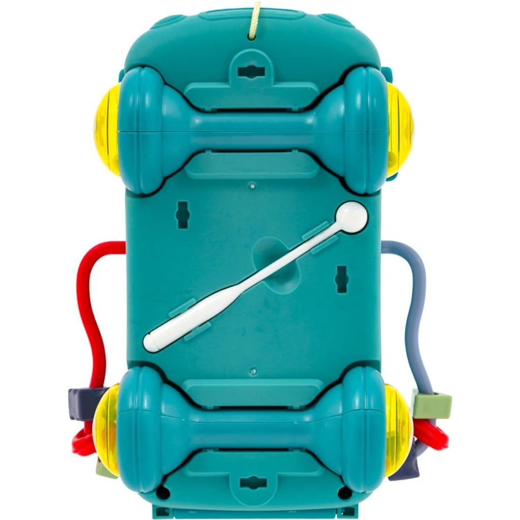 - Rodinhas com chocalho que tornam a brincadeira ainda mais divertida.
