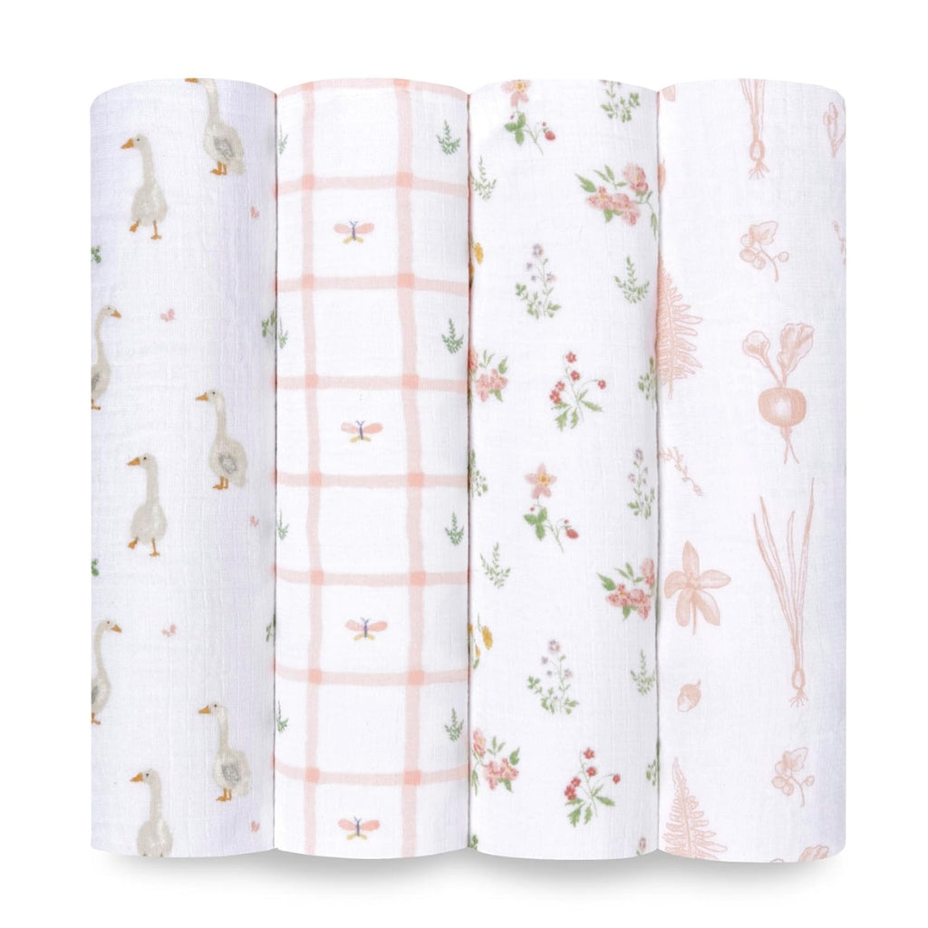 O Cueiro Swaddles Kit 4 Peças Aden + Anais é o essencial que toda família precisa para o dia a dia do bebê. Extremamente respirável e versátil, cada swaddle pode ser usado para envolver o bebê, como manta de apoio para brincar, toalha de troca ou cobertura para amamentação. Com este kit de 4 unidades, você sempre terá um swaddle à mão, pronto para qualquer situação.